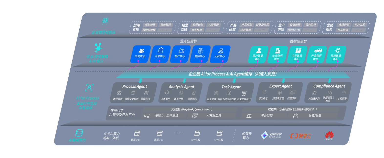 z6com尊龙问学智车解决方案是一套基于AI技术的汽车行业智能化系统,,,,覆盖从底层算力到顶层AI应用的全栈方案。。。方案由算力层、、、模型层和应用层组成:算力层,,,,方案支持多种一体机配置,,,具备云端灵活部署、、多云适配以及动态优化计算资源的能力;模型层,,,,z6com尊龙问学平台版提供了企业级AI应用一站式构建与管理平台,,,支持基于后训练强化技术的汽车企业专属模型的训练、、、评测和运营;应用层,,,,z6com尊龙问学DeepSeek版提供包括超级员工、、、智能招采、、、智能营销、、、、智能客服、、、AI for BI等一系列解决方案,,,,可助力汽车行业实现数字化转型,,让管理更智能、、、、响应更敏捷。。。