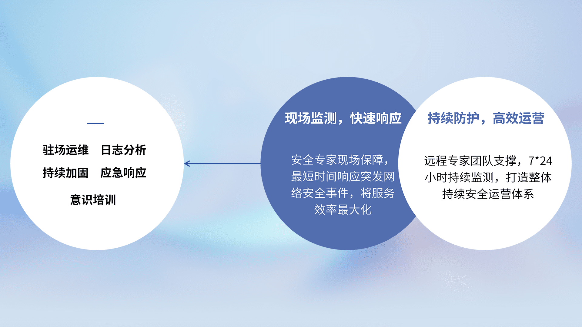 针对客户行业特性,,,,提供专属的一站式安全管理服务,,,,帮助客户全面感知网络空间威胁,,通过安全专家的线上、、线下防护支持,,实现风险闭环,,将安全保障常态化,,为客户打造常态化安全运维运营服务。。